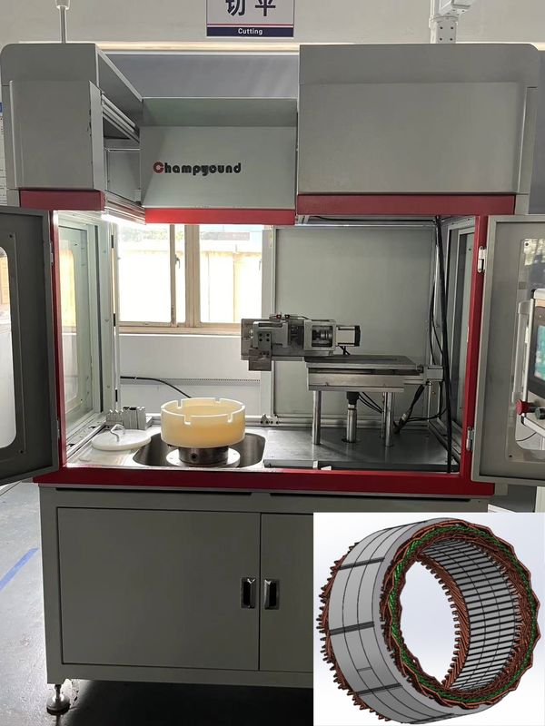 Die servokontrollierte Flachschneidemaschine ist für das hochpräzise Schneiden von Flachdrahtstatoren ausgelegt und sorgt für saubere und genaue Abschnitte für eine überlegene Motorleistung.mit einer Leistung von mehr als 1000 W, erlaubt es, beliebige Winkel zu schneiden und kann bei jedem Durchgang einen gleichen Durchmesser schneiden, um jedes Mal einen sauberen und präzisen Schnitt zu gewährleisten.